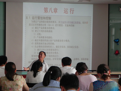 培訓專家系統地介紹了新標準中的22個強制過程和20個推薦過程的全部內容以及過程方法的運用。著重對項目管理過程、產品需求管理過程、設計和開發管理過程、采購管理過程、生產管理過程等強制管理過程進行了詳細的講解。通過深入淺出的講解和生動案例的分析,使全體參訓人員對新舊標準的差異之處、新標準的重點之處有了感性的了解。