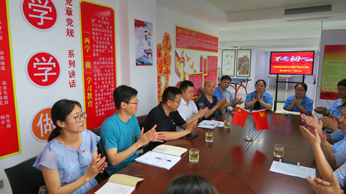 2018年6月30日下午,我司黨支部在行政樓五樓黨群活動(dòng)中心召開(kāi)紀(jì)念中國(guó)共產(chǎn)黨成立97周年座談會(huì)暨黨員大會(huì)。十名黨員同志、一名入黨積極分子、一名非黨員副總和一名團(tuán)委負(fù)責(zé)人參加了會(huì)議。江陰市委組織部“兩新組織”黨工委蔡曉華副書(shū)記、江陰市委政法委綜治辦潘麒副主任、月城鎮(zhèn)黨委書(shū)記顧志強(qiáng)、月城鎮(zhèn)黨委委員王江新同志也參加了本次會(huì)議。