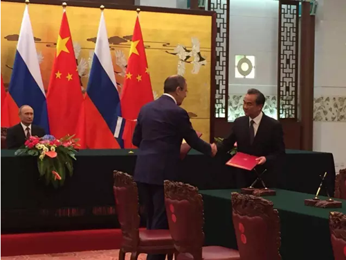 據(jù)新華社報(bào)道,2016年6月25日下午,國(guó)家主席習(xí)近平和俄羅斯總統(tǒng)普京舉行會(huì)談,共同簽署了《中華人民共和國(guó)和俄羅斯聯(lián)邦聯(lián)合聲明》《中華人民共和國(guó)主席和俄羅斯聯(lián)邦總統(tǒng)關(guān)于加強(qiáng)全球戰(zhàn)略穩(wěn)定的聯(lián)合聲明》和《中華人民共和國(guó)主席和俄羅斯聯(lián)邦總統(tǒng)關(guān)于協(xié)作推進(jìn)信息網(wǎng)絡(luò)空間發(fā)展的聯(lián)合聲明》,并見(jiàn)證了經(jīng)貿(mào)、外交、基礎(chǔ)設(shè)施、技術(shù)創(chuàng)新、農(nóng)業(yè)、金融、能源、媒體、網(wǎng)絡(luò)、體育等領(lǐng)域30多項(xiàng)合作文件的簽署。