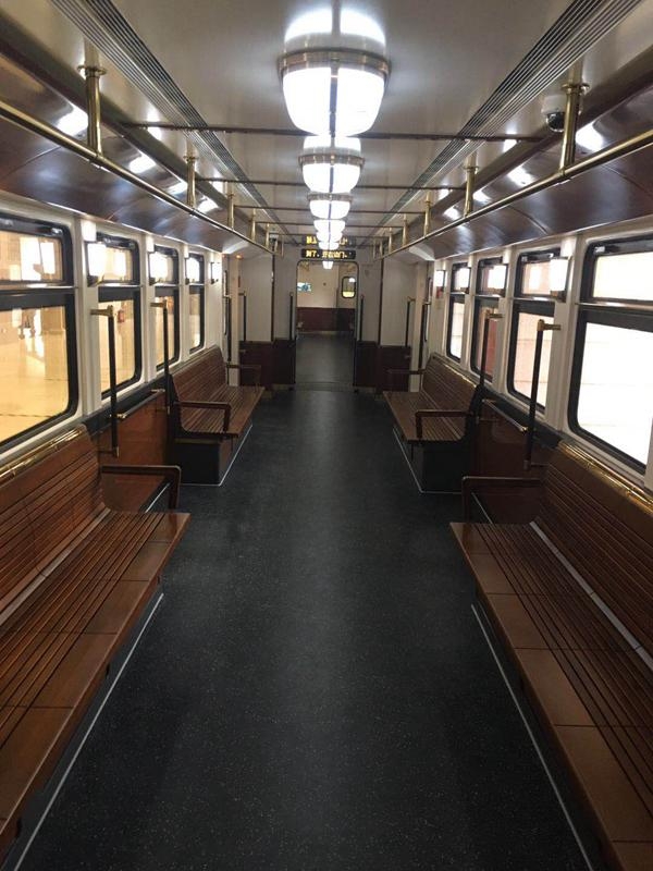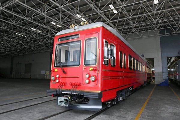 華為松山湖儲能式輕軌車輛走的是“高端定制化”路線,可謂“高端大氣上檔次”:造型陽剛硬朗,色彩濃厚穩重;紅色車身搭配黃銅線條,具有強烈的視覺沖擊力;內飾格調高雅,古銅色實木座椅、木紋水轉印墻板、銅條裝飾復古燈具,讓乘客在車輛強烈的復古風中找尋時代的跨越感,給人“五星級”的乘車體驗感。